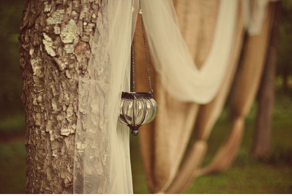 Com troncos e galhos onde possamos dependurar aconchegantes mantas, voils; lustres, lampadas, lanternas, lampiões.